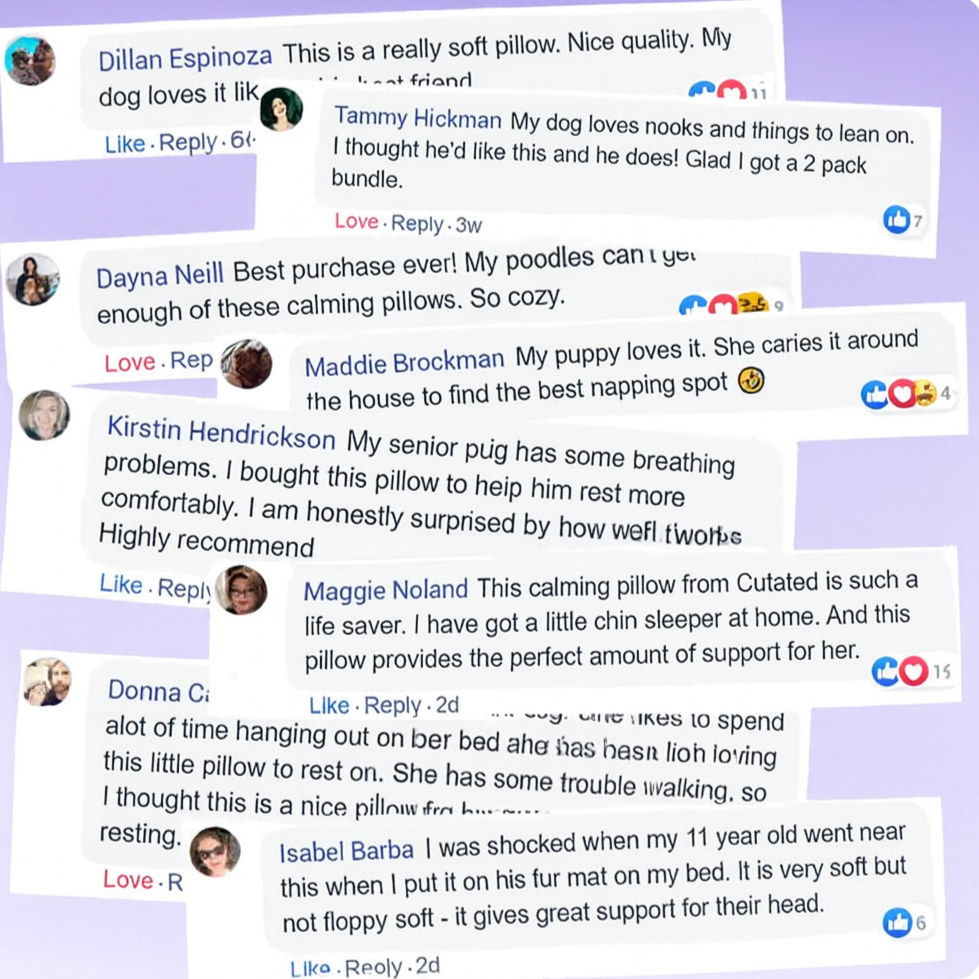 Every photo you see below comes from real customers who trusted our Calming Pillow to bring comfort to their pets.